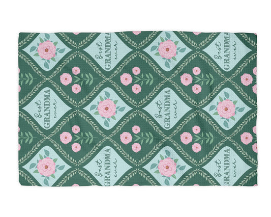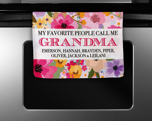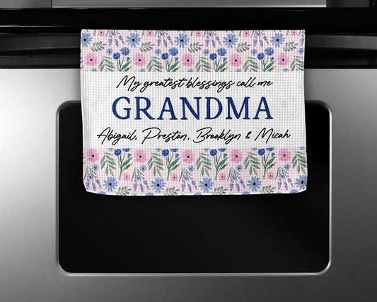 Custom Grandmother Gift Towel | Floral Kitchen Towel | Mother's Day Present | Personalized Gift for Grandma | Keepsake from Grandkids Floral
