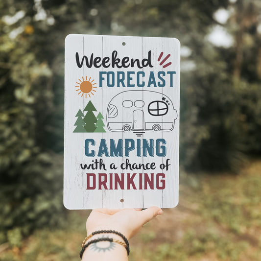 Weekend Forecast Camping Metal Sign - 8"x12"