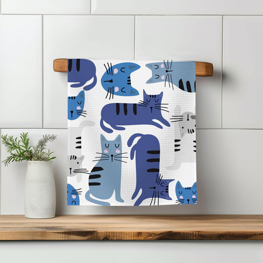 Cat Kitten Kitty Blue Cat Lady White Kitchen Towel Waffle Weave Hostess