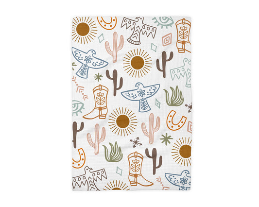 Aztec Western Horse Dessert Cowboy Boot Kitchen Towel Waffle