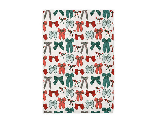 Red Green Bow Chinoiserie Christmas Kitchen Towel Waffle