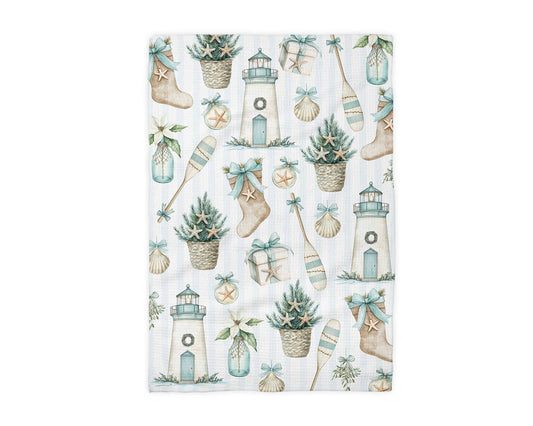 Beach Coastal Christmas Kitchen Towel Waffle Holiday Decor