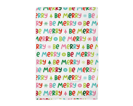 Be Merry Christmas Whimsical Preppy Kitchen Towel Waffle