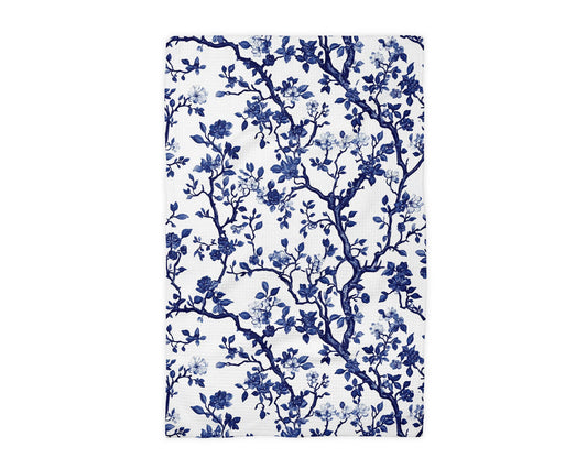Chinoiserie Branches Floral Kitchen Towel Blue White Spring