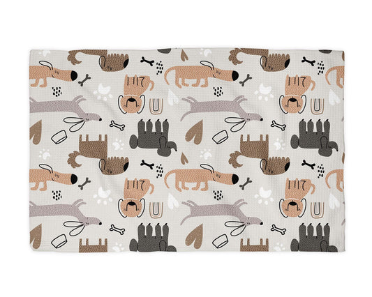 Dog Puppy Dog Mom Lady White Kitchen Towel Waffle Weave Hostess Pet Lover Modern Funky Friend