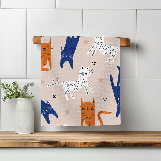 Cat Kitten Kitty Blue Cat Lady White Kitchen Towel Waffle Weave Hostess