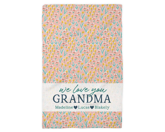 Custom Grandmother Gift Towel | Floral Kitchen Towel | Mother's Day Present | Personalized Gift for Grandma | Keepsake from Grandkids Floral