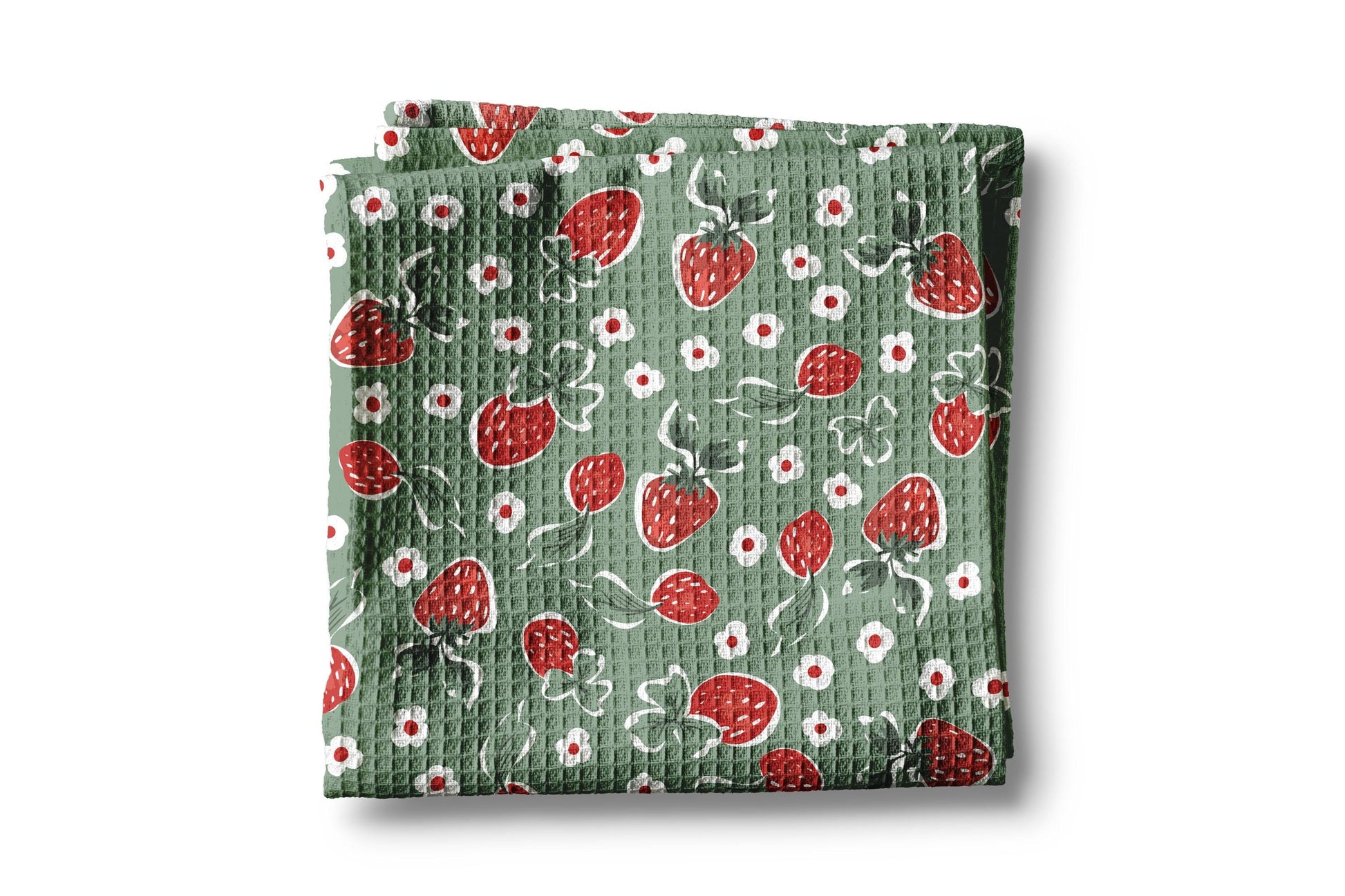 Berry Strawberry Kitchen Towel – Summer Farmers Market Decor, Berry Picking Towel, Waffle Weave, 16x24" Dish Towel