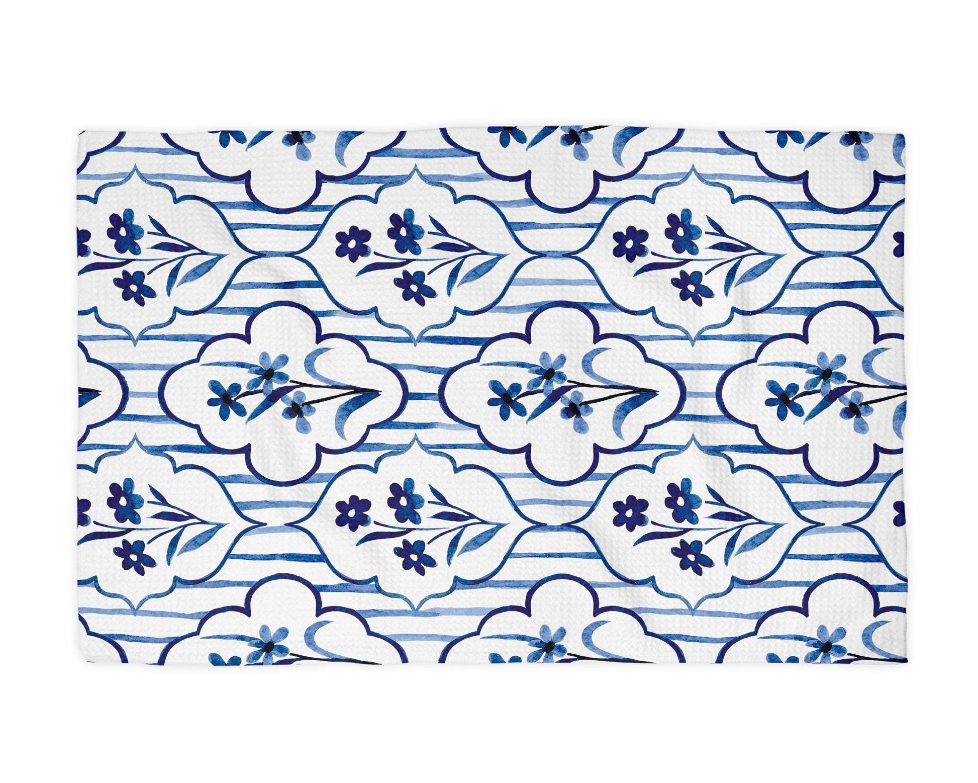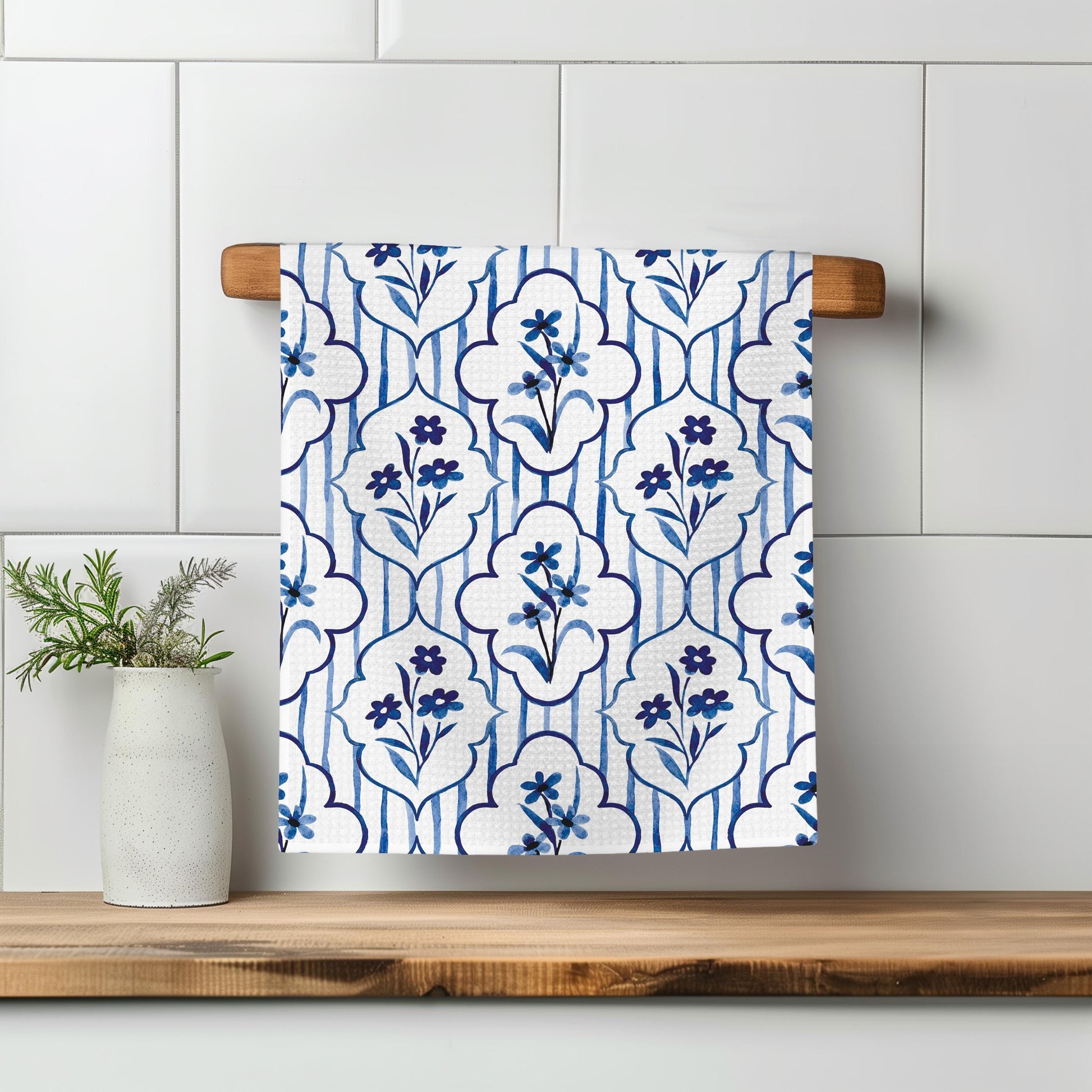Blue White Floral Dish Towel | Chino Tea Set Towel | Chinoiserie Accessory | Tea Party Gift | Hostess Gift