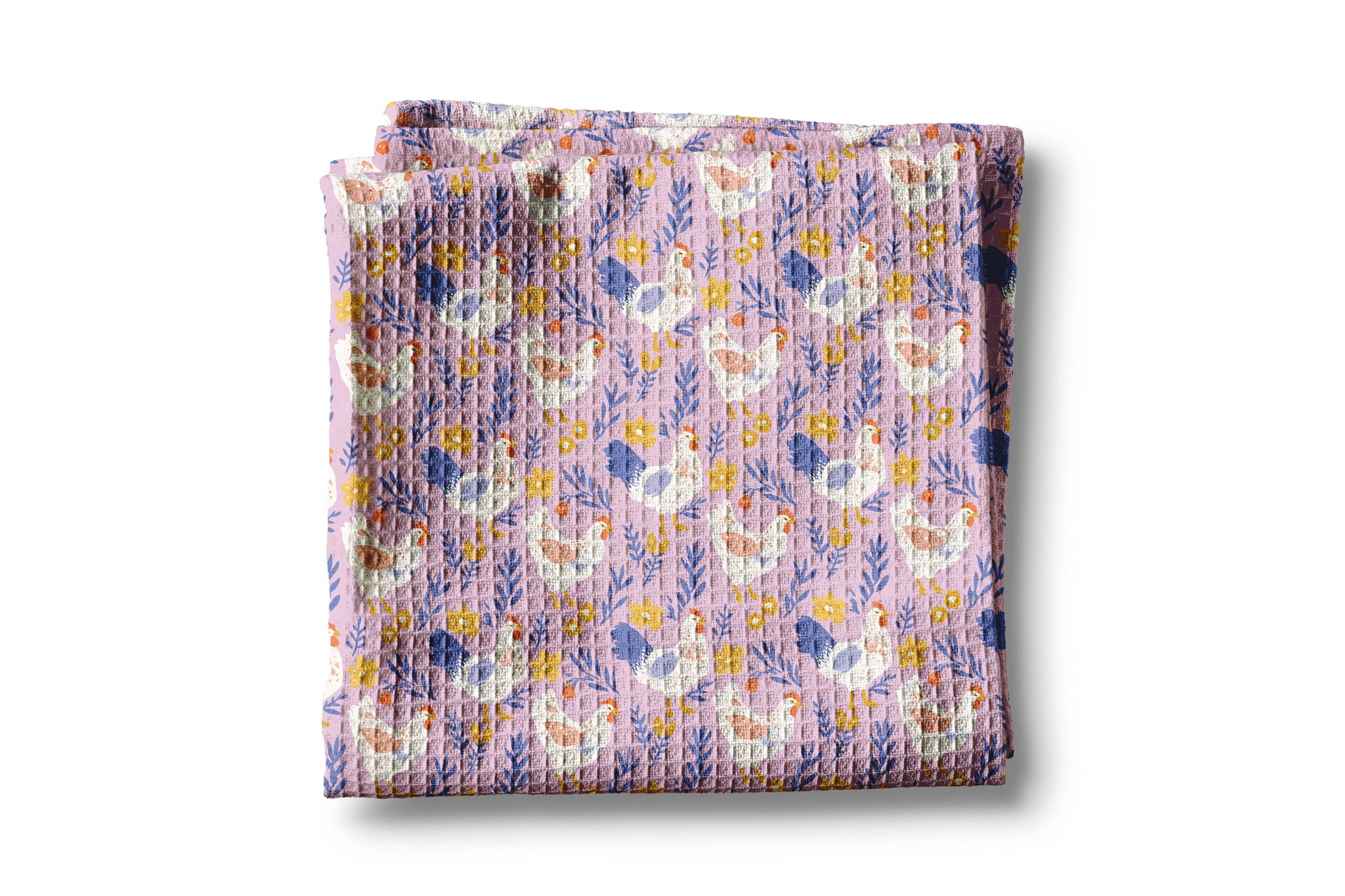 Perfect for the homesteading enthusiast and farmer at heart, this charming 16"x 24" kitchen towel showcases a delightful pink floral chicken design permanently printed across the entire single side in vibrant, fade-resistant color.
