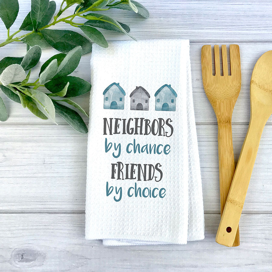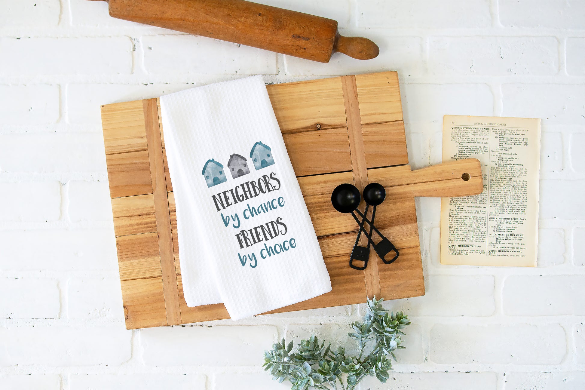This Neighbors By Chance Friends towel is a perfect gift for the neighbors that became friends! It is also great for cleaning the kitchen or drying any surface. Personalized towels never go out of style and make excellent housewarming, wedding, hostess, and just because gifts. All orders are customized for you and shipped from Florida.