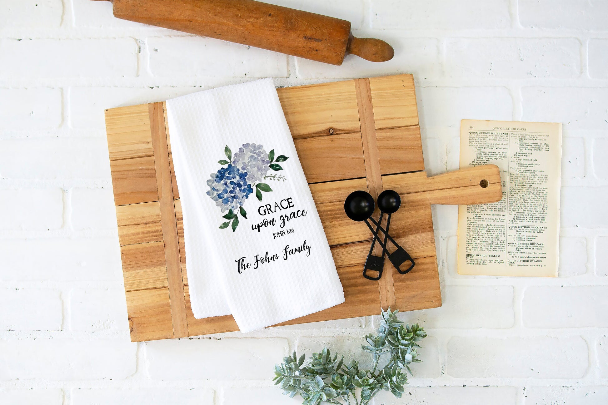 Discover the charm of a personalized kitchen towel that blends faith and floral beauty effortlessly. This custom floral hand towel, featuring delicate hydrangea motifs and inspiring bible verses, adds a meaningful touch to any kitchen or housewarming gift. Crafted with care, it’s designed to brighten your space while offering practical use as a dish towel.