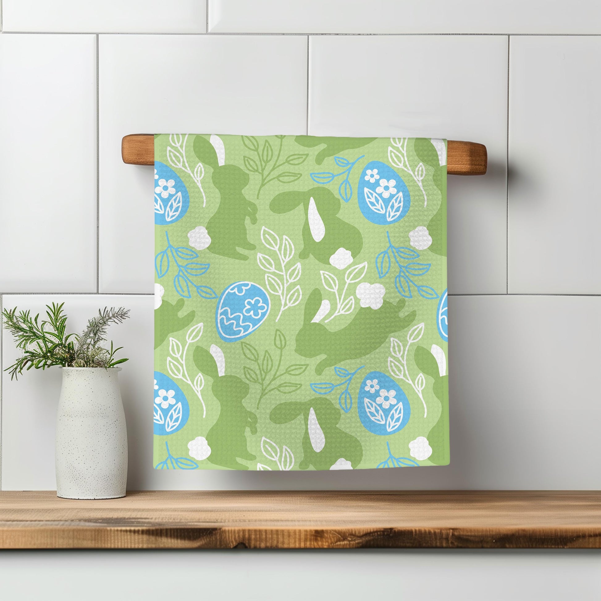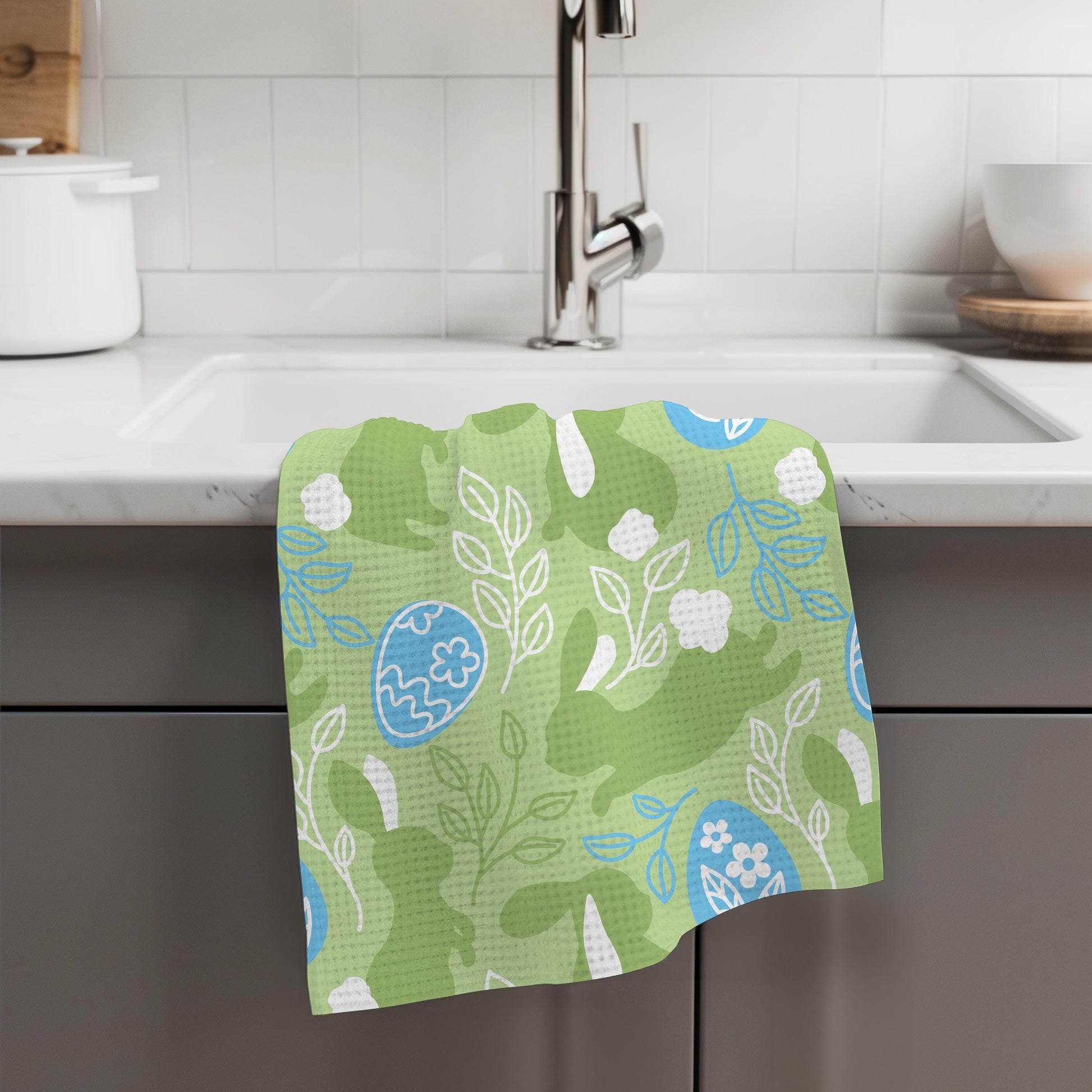 Easter Bunny Kitchen Towel – Waffle Weave, Lint-Free, Super Absorbent, Spring Easter Decor Floral