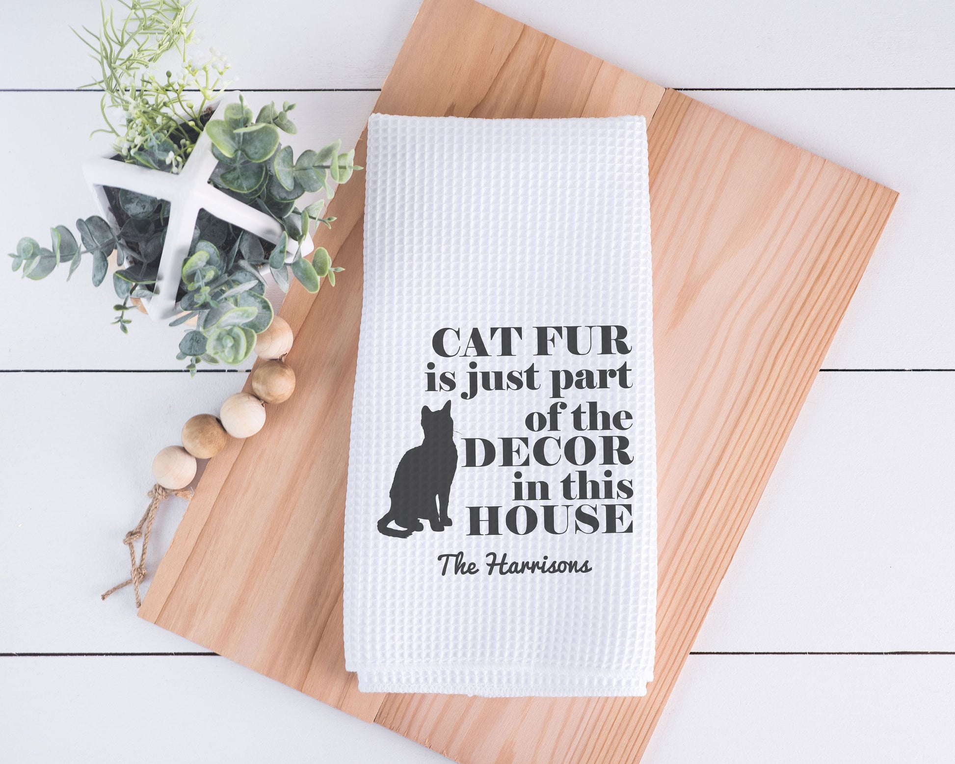 Funny Cat Kitchen Towel: Personalized Waffle Weave, Lint-Free