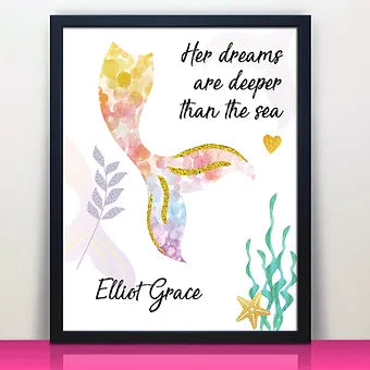 Her Dreams Are Deeper Than The Sea Personalized Mermaid Print
