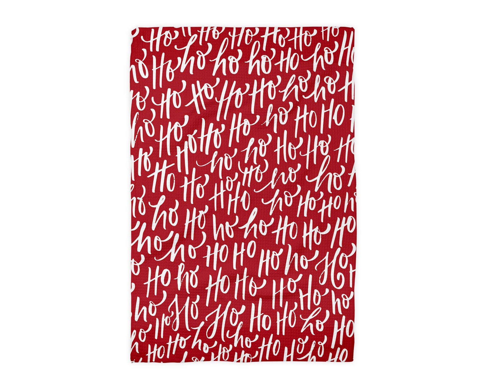 Ho Ho Ho Script Kitchen Tea Towel Waffle Holiday Decor