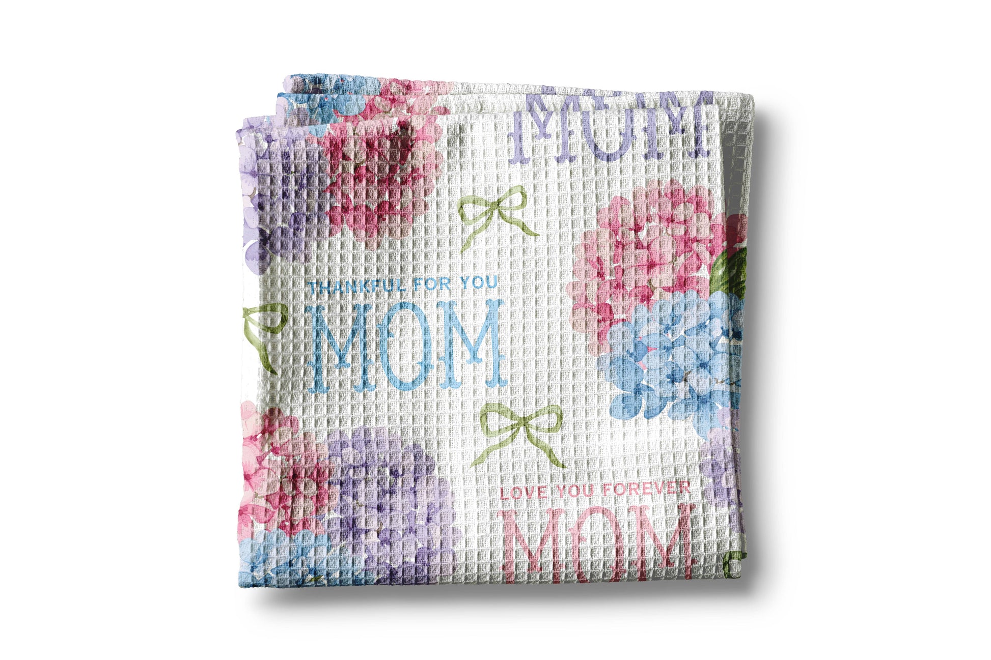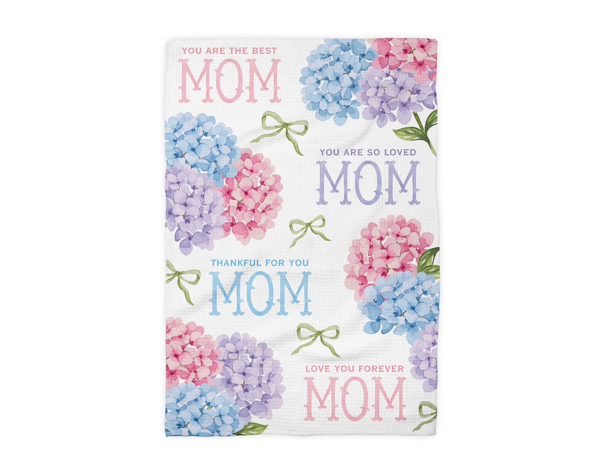 Mother's Day Waffle Towel Floral Best Mom Kitchen Hydrangea