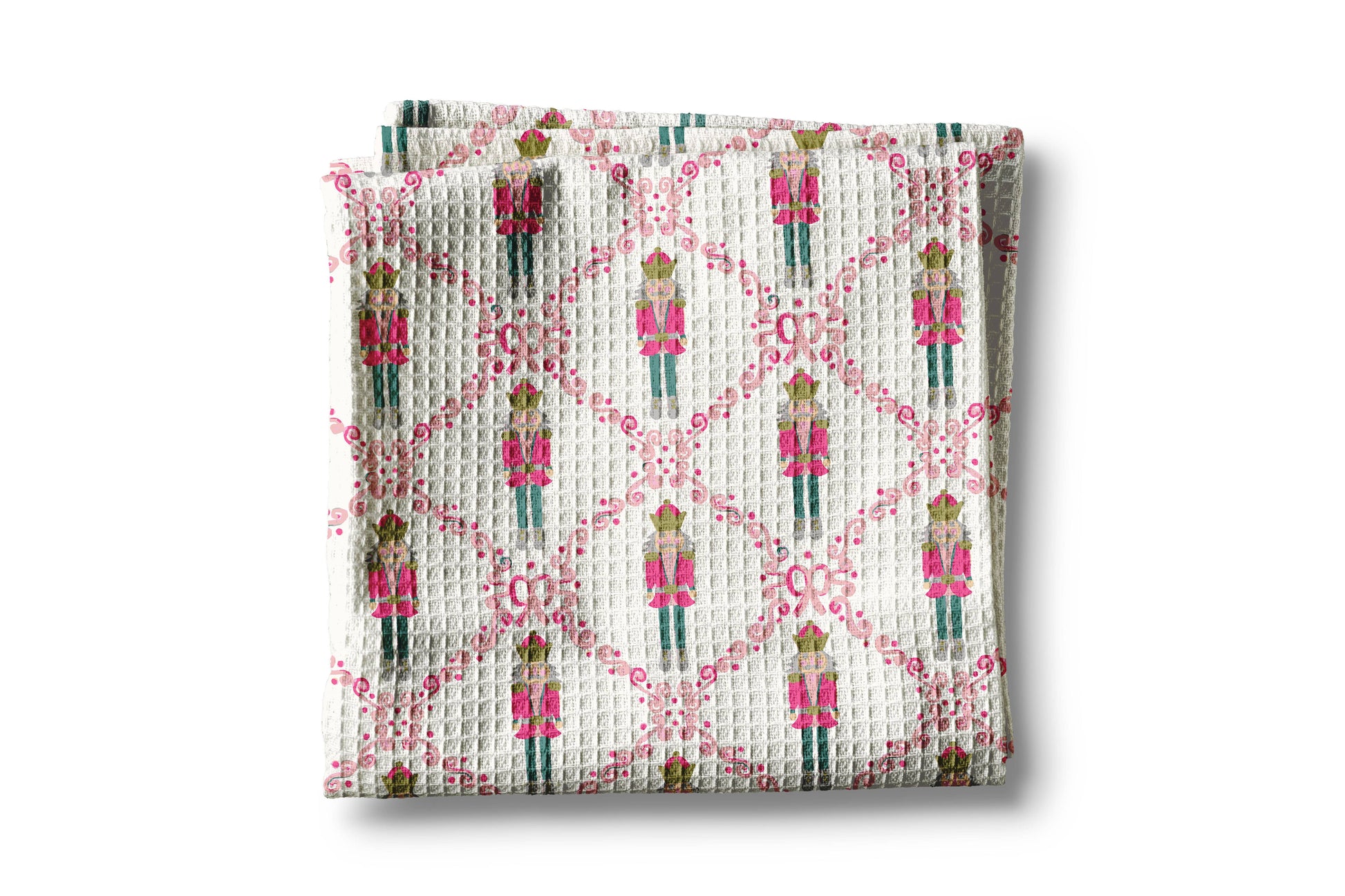 Nutcracker Pink Chinoiserie Christmas Kitchen Towel Waffle