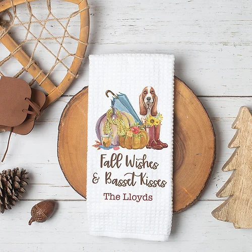 Personalized Fall Wishes & Basset Kisses Kitchen Towel