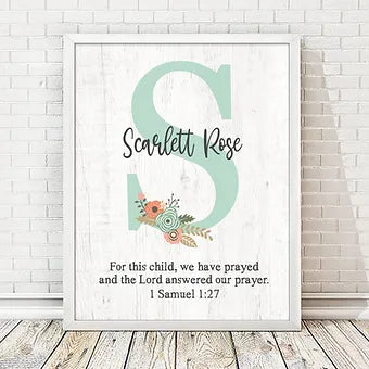 Personalized For This Child We Have Prayed Teal Monogram Print