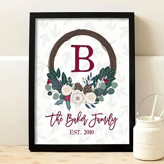 Personalized Monogram Christmas Wreath Print