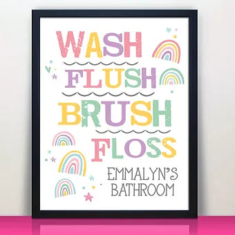 Personalized Rainbow Wash Flush Brush Floss Bathroom Print