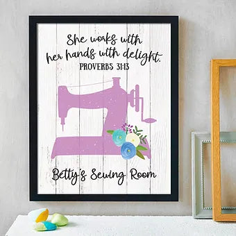 Personalized She Works With Her Hands With Delight Sewing Room Print