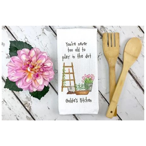 Personalized You're Never Too Old To Play In The Dirt Dish Towel