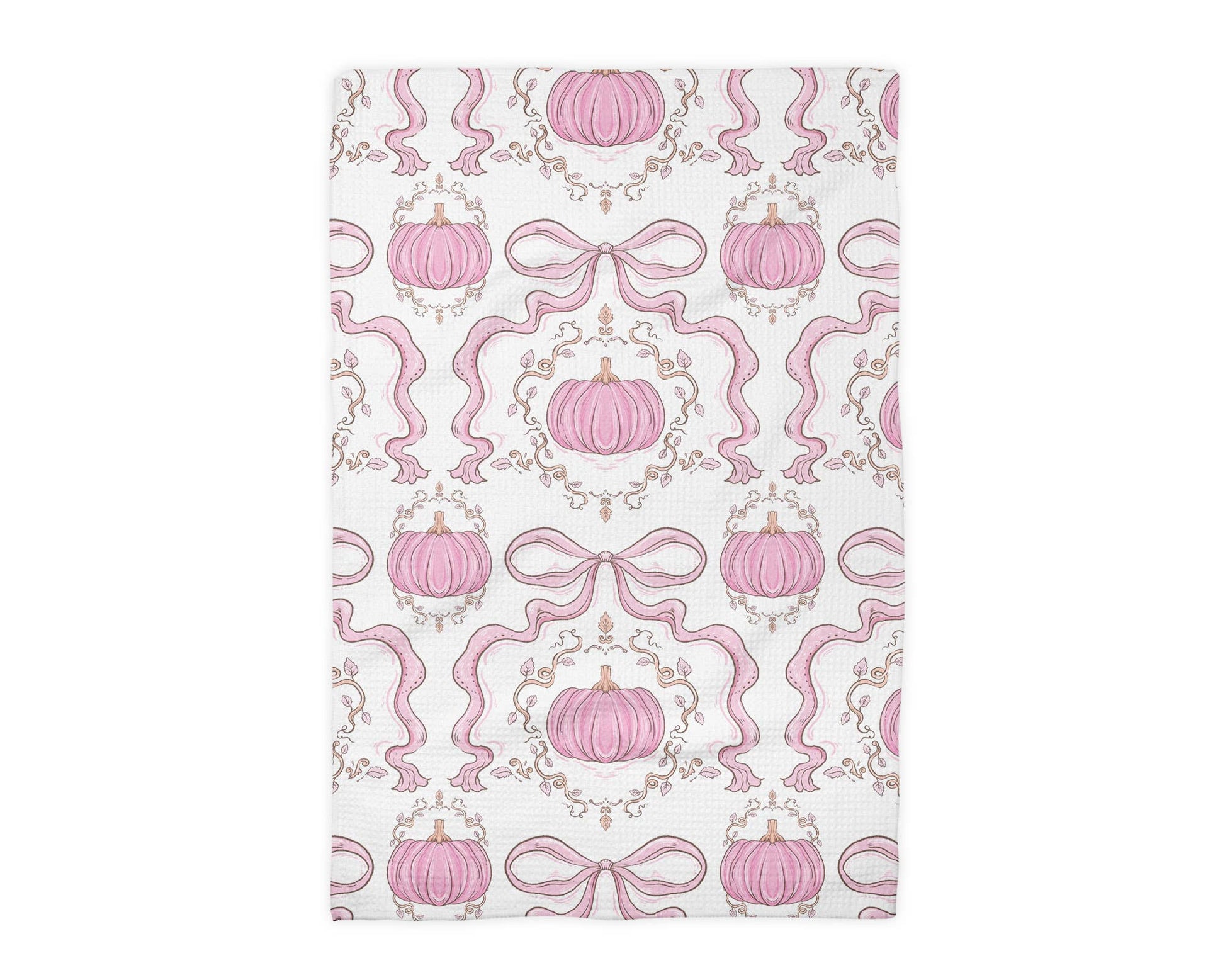 Pink Pumpkin Chinoiserie Fall Coastal Kitchen Towel Waffle