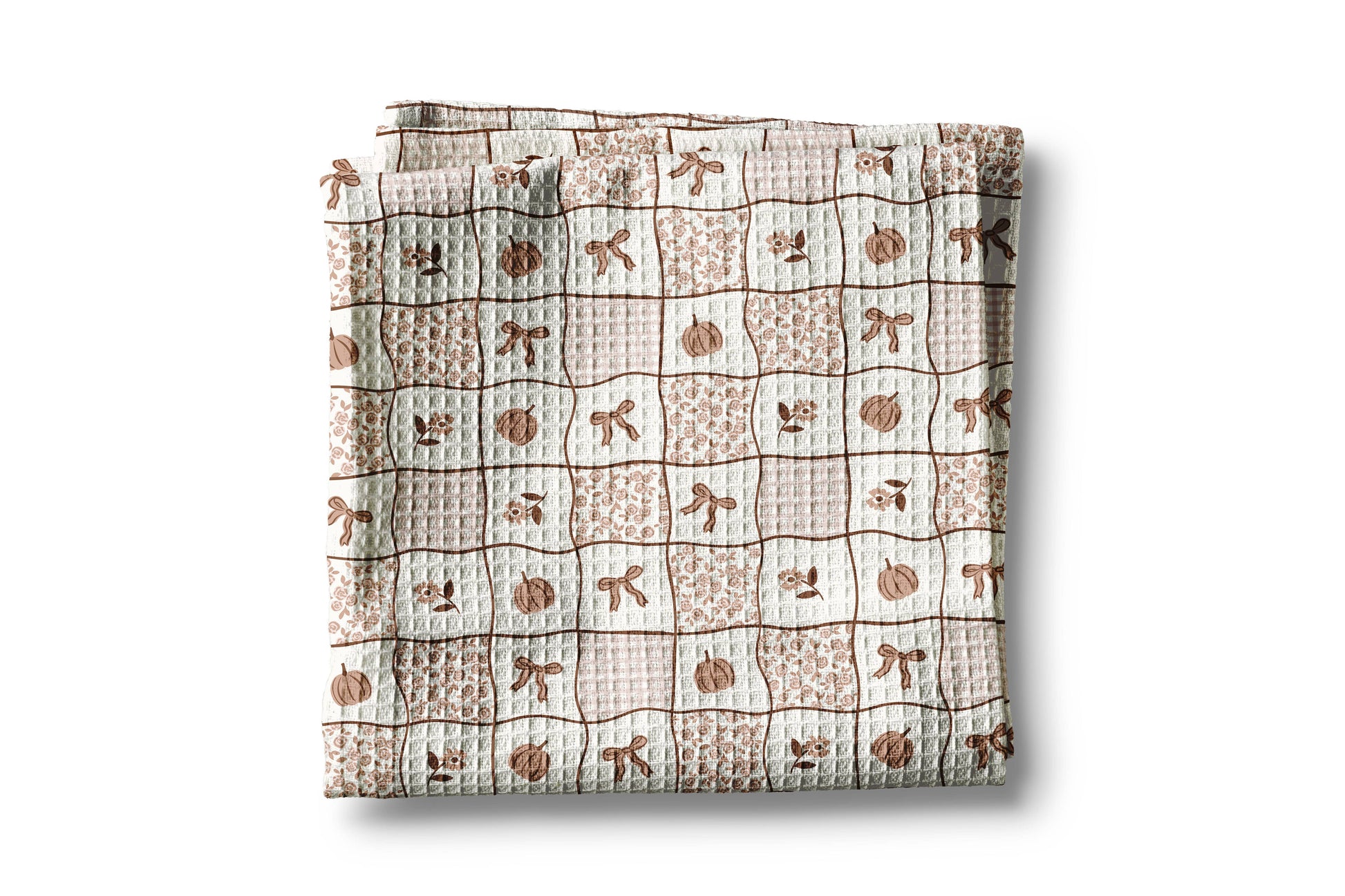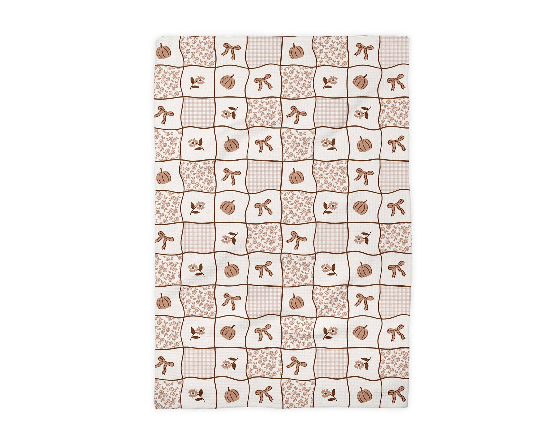 Pumpkin Patchwork Quilt Fall Kitchen Towel Waffle Coquette