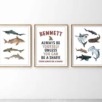 Set of Three Personalized Shark Print