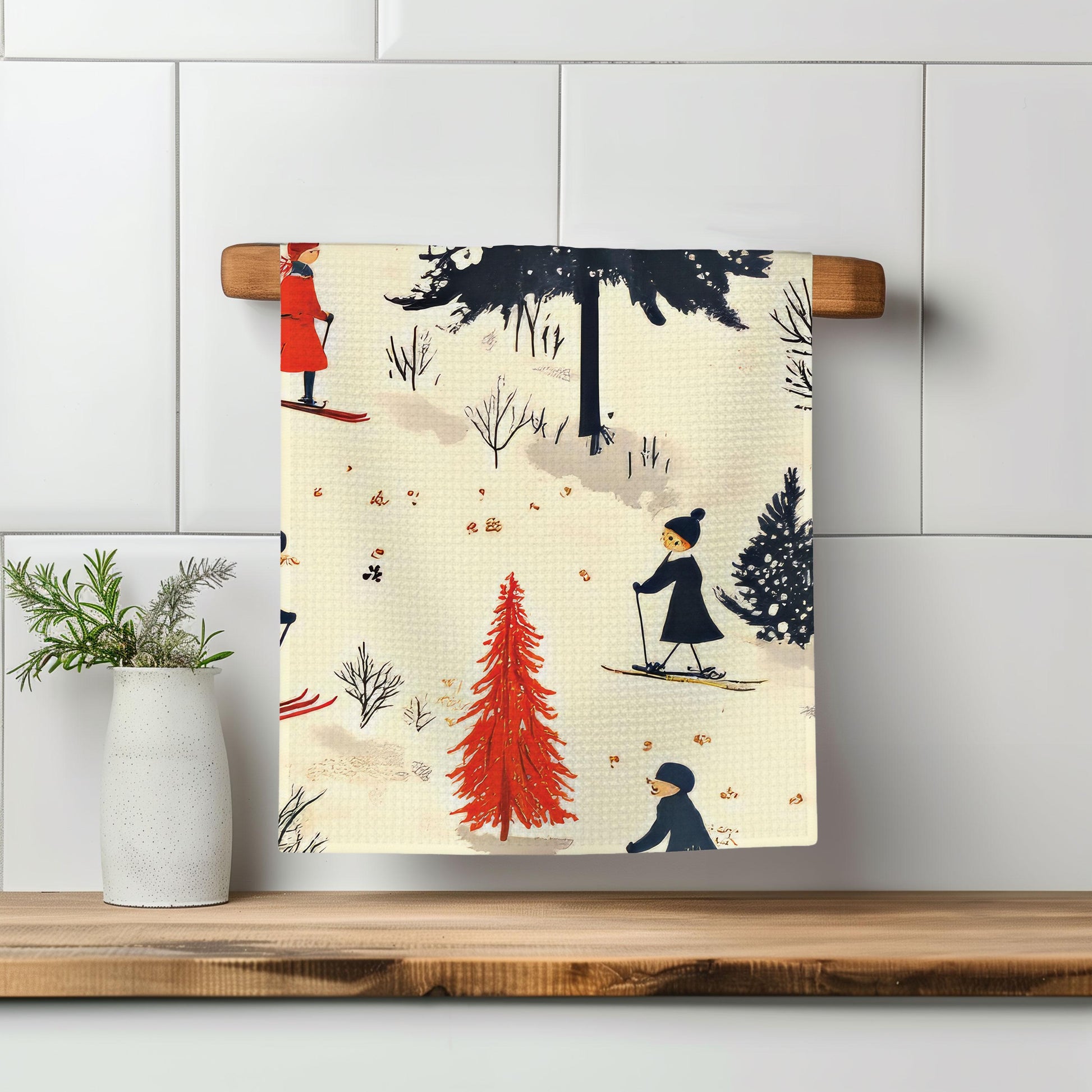 Ski Lodge Towel | Winter Vacation Home Towel | Mountain Life Gift | Skiing Accessories | Holiday Cabin Dish Towel Apre Ski Hiking Snow