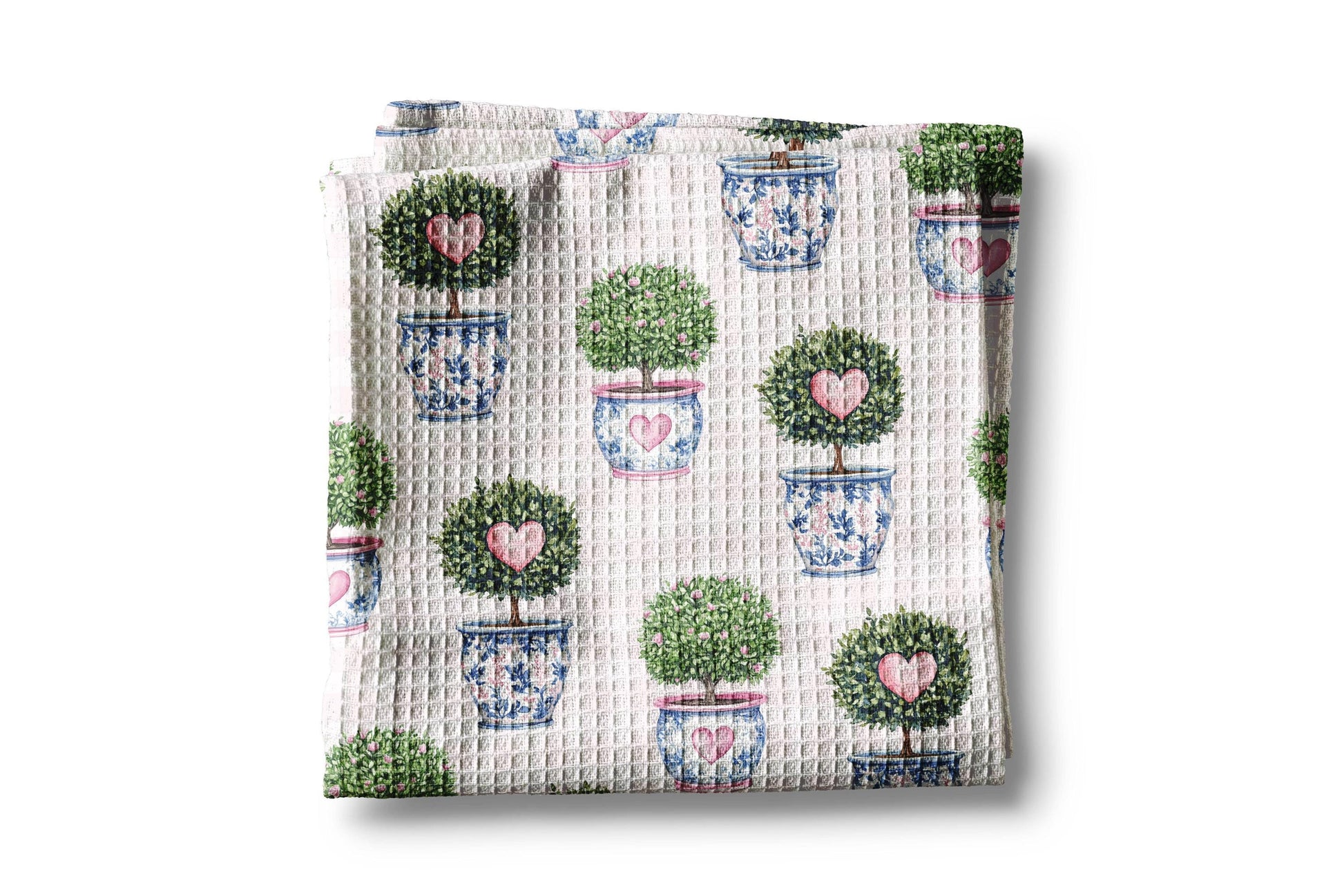 Celebrate the charm of Valentine’s Day with this exquisite chinoiserie topiary kitchen towel, a perfect blend of elegance and practicality. Inspired by classic floral heart motifs and crafted with care, this waffle weave towel brings a touch of preppy sophistication to your kitchen or as a thoughtful Galentine’s gift. Its unique texture not only adds style but also enhances drying performance, making it a delightful addition to your February decor.